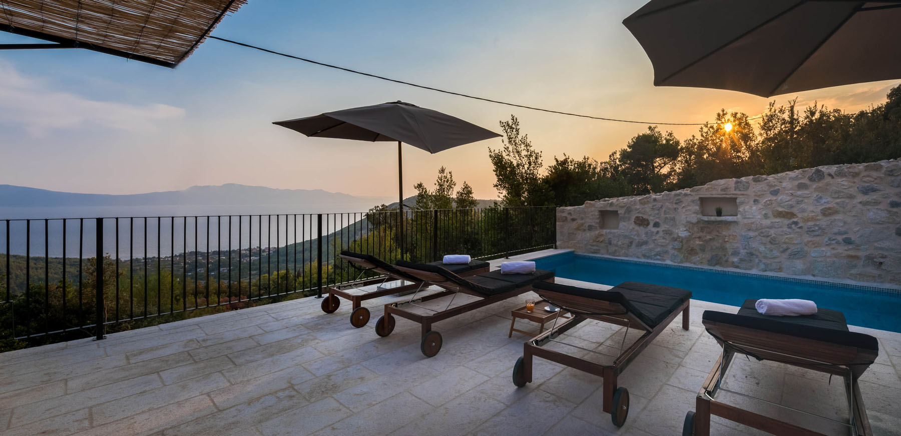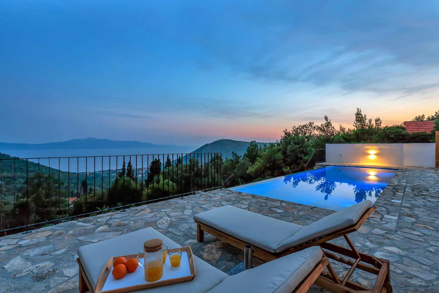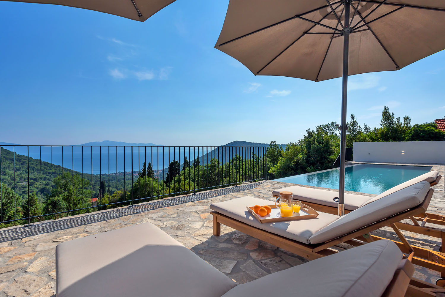 Rekreační dům s vyhřívaným bazénem v klidné lokalitě a terasou s výhledem na moře.