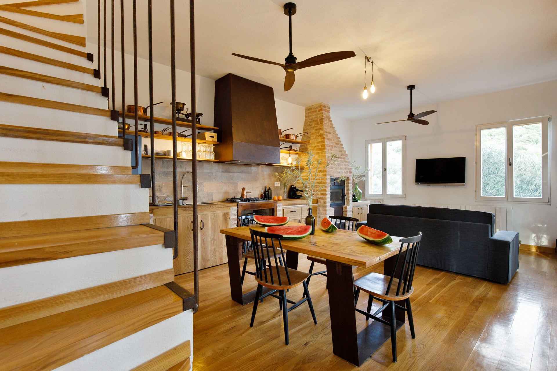 Vila Nela má otevřený obývací pokoj s velkými pohodlnými pohovkami a satelitní TV. K dispozici jsou dva velké stoly s posezen...